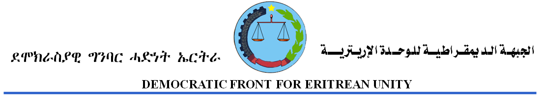 ደግሓኤ ኣብ ኩሉ ቦታት ብብርጌድ ንሓመዱ ኣብ ዝተጸውዑ መድረኻት እናተረኽበ ኣወንታዊ ተራ ተጻዊቱን ይጻወት ኣሎን። ህዝባዊ ሓርነታዊ ቃልስና ክሳብ ዘይተመለሰን ኣብ ሃገርና ልኡላውነትን ወሳንነትን ህዝቢ ምሉእ ንምሉእ ዘረጋግጽ ባይታ ክሳብ ዘይተረጋገጸን መስዋእቲ ንቕድሚት’ውን ክንከፍል ኢና፡፡ ኣብ ትሕቲ ናይ መን ውድብ፣ ሰልፊ፣ ምንቅስቓስ፣ ህዝባዊ ማዕበል ኮይኑ ዝተፈጸመ ብዘየገድስ ከኣ፡ እቲ ዝኽፈል መስዋእቲ ህዝባዊ’ዩ። ጀጋኑና ናይ ውድባቶም ዘይኮነ ናይ ውጹዕ ህዝቢ ሰማዕታት’ዮም። በዚ ኣጋጣሚ ንኹሎ’ቶም ንስለ ድሕነት ህዝቢ ክብሉ ዝተሰውኡ ተቓለስቲ ስድራቤትን መቕርብን ጽንዓት ይሃብኩም ይብል። ናይ ግድን መሰልና ብቃልስና ብክቡር ደምና ብመስዋእትና ክረጋገጽ’ዩ። ስቓይና ክሓጽር መስዋእትና ክውሕድ ግን፡ ሕድሕድ ኣፍልጦ ተወሃሂብና፡ ተኸባቢርና ተናቢብናን ቀላጽምና ኣላፊና ኣንጻር ደመኛ ዘቤታዊ ጸላኢና ንወፍረሉ ፖለቲካዊ ባይታ ንፍጠር። መልእኽቲ ደሞክራስያዊ ግንባር ሓድነት ኤርትራ (ደግሓኤ)’ዩ።